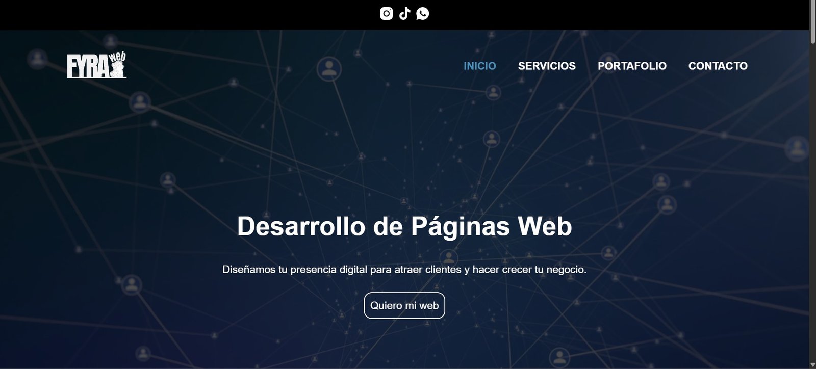 Diseño y desarrollo del sitio web institucional de FyraWeb, enfocado en una estética moderna, navegación clara y una presentación profesional de servicios orientados a la conversión.